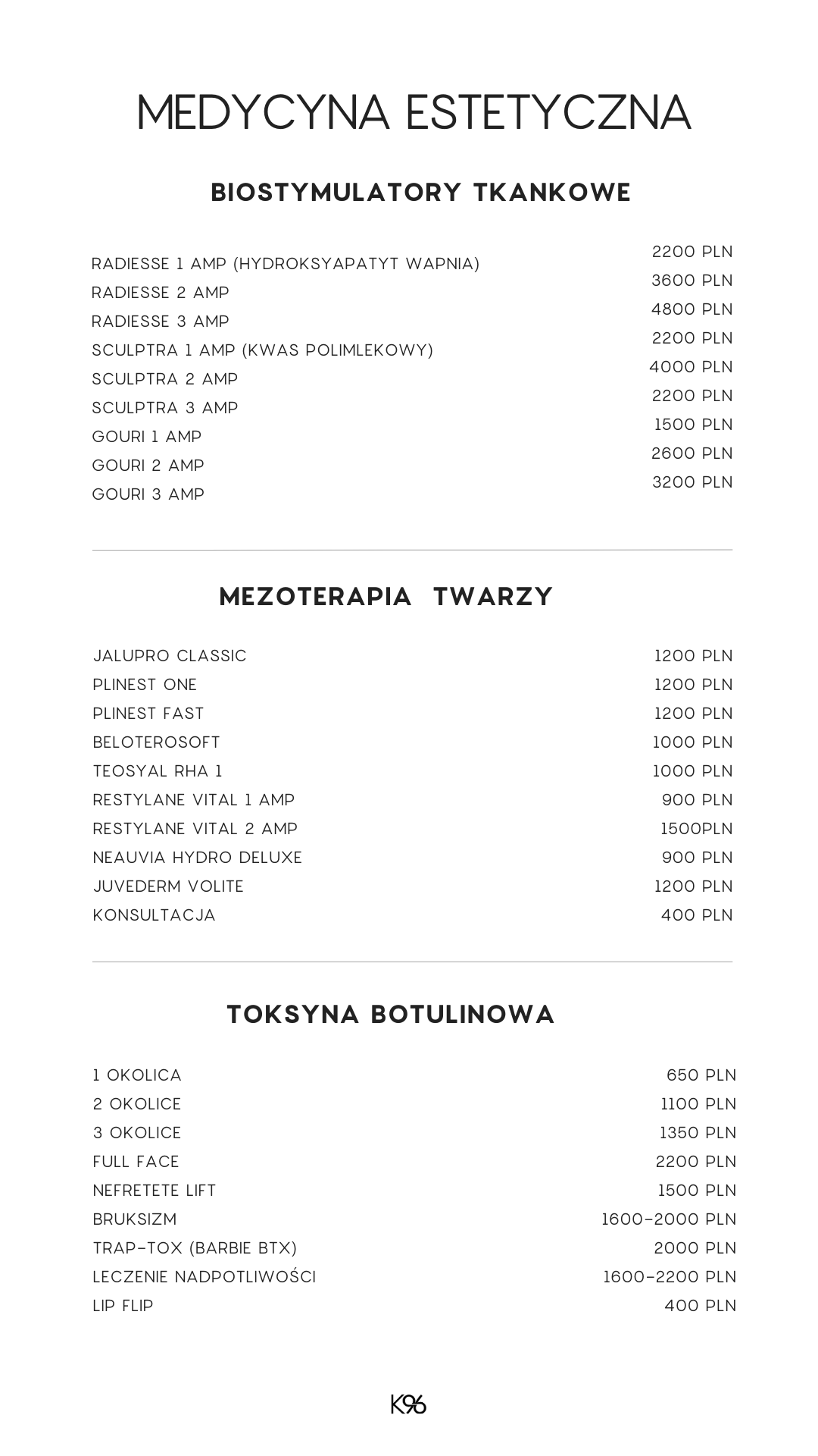 CENNIK MEDYCYNA ESTETYCZNA