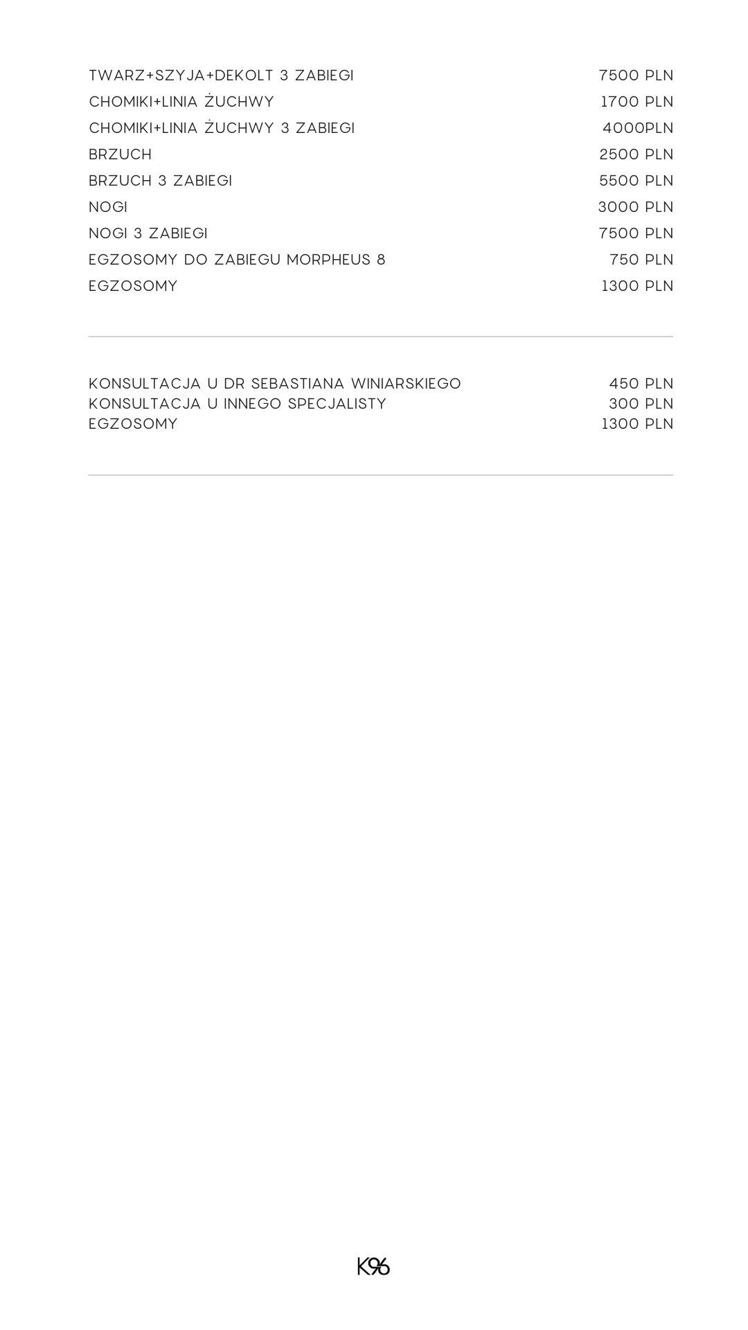 CENNIK KOSMETOLOGIA